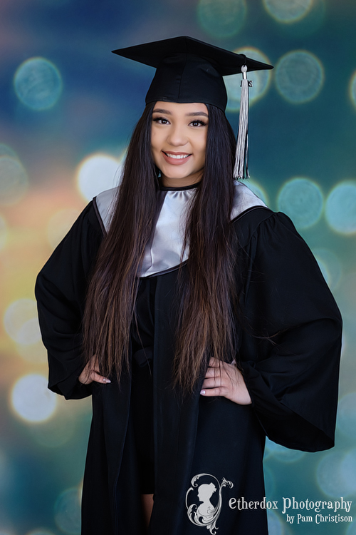 I clearly remember this awesome girl as a kindergartner... see the photo farther down where she's holding her preschool graduation portrait... she's grown up so beautiful and talented! We took a little time to do a few cap and gown photos, both in my home/studio and in the park nearby.